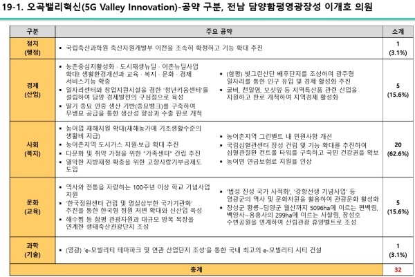 ▲ 전라남도 담양군·함평군·영광군·장성군 이개호 의원 공약(정치/경제/사회/문화/과학(기술)) [출처=국가정보전략연구소(iNIS)]