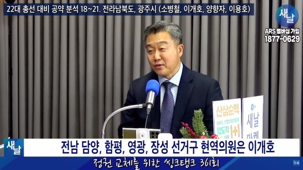 12월12일(화요일) 새날 유튜브 방송은 2020년 21대 국회의원 선거에서 당선된 전라남도 담양군·함평군·영광군·장성군 이개호 의원이 제시한 선거공약을 평가했다.