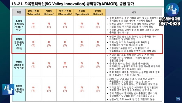 평가를 위한 방송에는 푸른나무, 이상구 원장, 민진규 소장(국가정보전략연구소) 등이 출연했다. 평가 방법은 국가정보전략연구소(국정연, iNIS)가 개발한 ‘오곡(五穀)밸리혁신(5G Valley Innovation)-선거공약(ARMOR)’ 평가 모델을 적용했다.