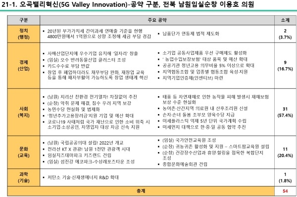 ▲ 전라북도 남원시·임실군·순창군 이용호 의원 공약(정치/경제/사회/문화/과학(기술)) [출처=국가정보전략연구소(iNIS)]