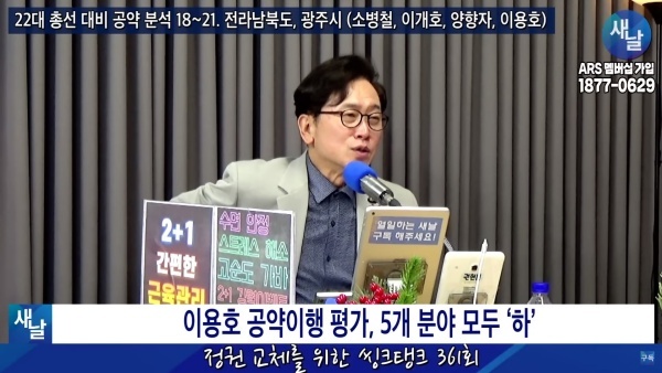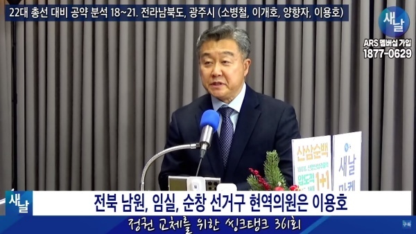 12월12일(화요일) 새날 유튜브 방송은 2020년 21대 국회의원 선거에서 당선된 전라북도 남원시·임실군·순창군 이용호 의원이 제시한 선거공약을 평가했다.