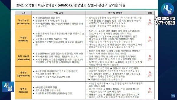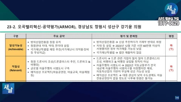 [국회의원 공약 평가] 23. 새날 방송, 경상남도 창원시 성산구 강기윤 의원···달성가능성 등 5개 부문 모두 하(下) 231226