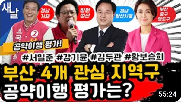 ▲ 경상남도, 부산광역시 지역구 의원 공약 평가 인트로 [출처 = 새날 유튜브]