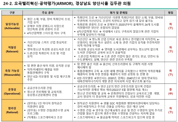 [국회의원 공약 평가] (재공지) 24. 새날 방송, 경상남도 양산시을, 김두관 의원···운영성 중(中) 외 4개 부문 하(下)