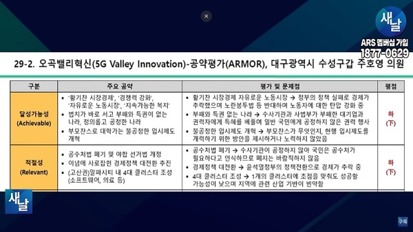 [국회의원 공약 평가] 29. 새날 방송, 대구광역시 수성구갑 주호영 의원···달성가능성 등 5개 부문 모두 하(下)
