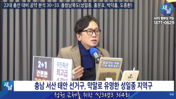새날 “정권 교체를 위한 씽크탱크” 364회 : 22대 총선 대비 공약 분석 30. 충청남도 서산시·태안군 성일종 의원