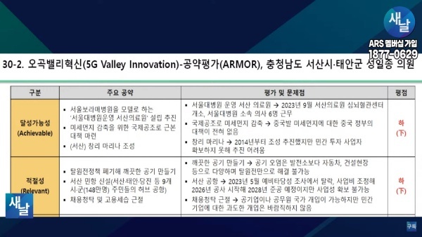 [국회의원 공약 평가] 30. 새날 방송, 충청남도 서산시·태안군 성일종 의원···달성가능성 등 5개 부문 모두 하(下)