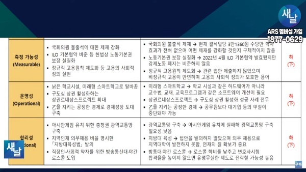 도종환 의원의 공약을 국정연이 개발한 갑옷(ARMOR), 즉 달성 가능성(Achievable)·적절성(Relevant)·측정 가능성(Measurable)·운영성(Operational)·합리성(Rational) 지표를 적용해 평가해보니 민주당의 도종환 의원 역시 5개 분야 중 5개 모두가 하(下)로 평가되었습니다. 간략한 내역과 개선방안을 정리하면 다음과 같습니다.