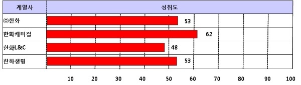 ▲한화 그룹의 평가대상 기업의 성취도 비교