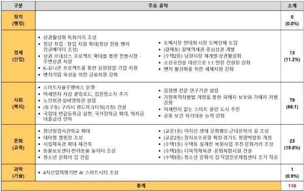 다음으로 △문화교육 공약 19.8% △경제산업 공약 11.2% △과학기술 공약 0.9% △정치행정 공약 0.0%를 기록했다.