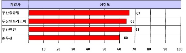 두산의 기업문화가 인프라 관련 사업을 추진하는데 맞지 않다는 평가를 받고 있는 만큼 괄목할만한 실적을 내기는 어려울 것으로 전망된다.