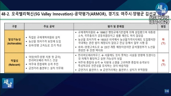 [국회의원 공약 평가] 48. 새날 방송, 경기도 여주시·양평군 김선교 의원···달성가능성 등 5개 부문 모두 하(下)