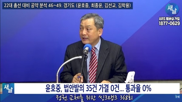 2024년02월06일(화요일) 새날 유튜브 방송은 2020년 21대 국회의원 선거에서 당선된 경기도 구리시 윤호중 의원이 제시한 선거공약을 평가했다. 평가를 위한 방송에는 푸른나무, 이상구 원장, 민진규 소장(국가정보전략연구소)이 출연했다.