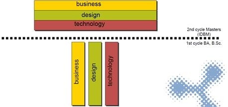첫 번째 사이클은 학사에 관한 것으로 경영(Business), 디자인(Design), 기술(Technology)을 종적으로 전문성 심화이고 두 번째 사이클은 석사에 관한 것으로 횡적으로 전문성을 확장하는 T-Shape 커리큘럼이다.