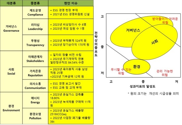 △거버넌스(Governance·지배구조)=거버넌스는 2022년 ESGI+ 경영 추진을 선포하며 구체적인 전략목표를 제시했지만 두드러진 성과는 없다.