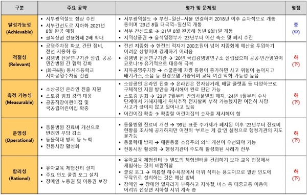 ▲ 서울시 강서구병 한정애 의원 공약 평가 결과(달성가능성/적절성/측정가능성/운영성/합리성) [출처=국가정보전략연구소(iNIS)]