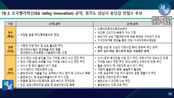 판교 콘텐츠 거리 조성 공약도 이미 ’23년 10월부터 성남시가 착공해 추진하는 사업으로 공약으로는 이미 완료가 되었으므로 국회의원의 신규 공약으로 부적절합니다.