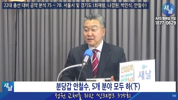 새날 “정권 교체를 위한 씽크탱크” 375회 : 22대 총선 대비 공약 분석 78. 경기도 성남시 분당갑 안철수 후보
