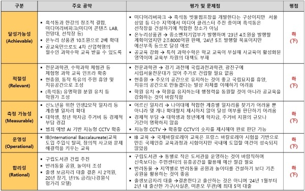 미디어리버파크 및 데이터산업 클러스터 등 주요 공약은 달성 가능성 낮아