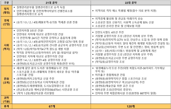 ’미추홀 스포츠홀‘은 미추홀구 종합체육관 건립으로 바꾸어 재탕하고 있고, (용현 5동)여고 신설은 (용현 5동) 남녀공학 신설로 바꾸었을 뿐입니다.