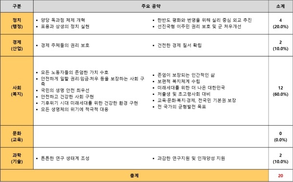 정치·사회 공약 80.0% vs 경제·과학기술 공약 20.0%