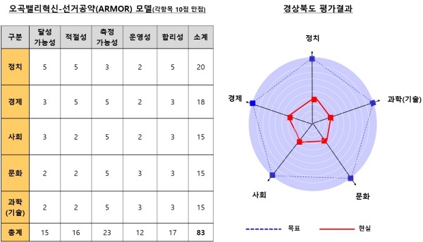 ▲ 경상북도의 ‘오곡(五穀)밸리혁신(5G Valley Innovation)-선거공약’ 모델의 평가 결과[출처 = iNIS]