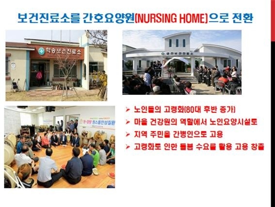 ▲ 농어촌의 보건진료소를 활용한 간호노인요양시설 확충 방안