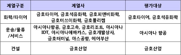 ▲ [표1. 금호의 주요 계열사와 평가대상]