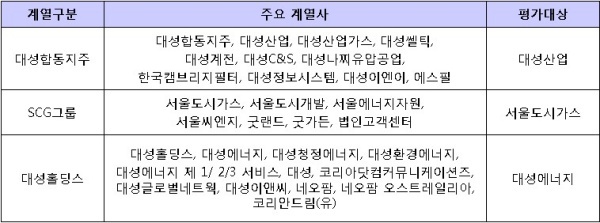 ▲ [표1. 대성그룹의 주요 계열사와 평가대상]