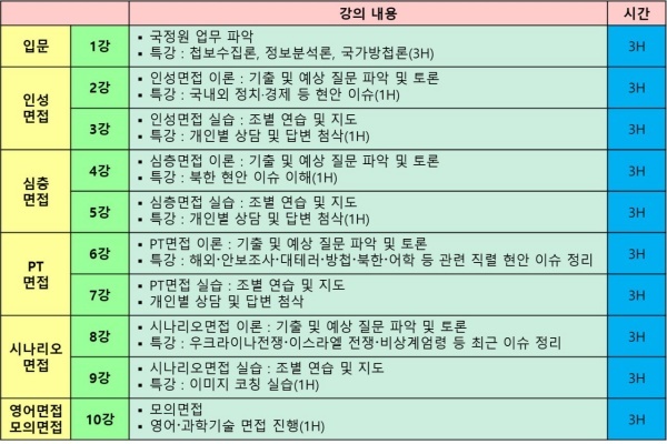 ▲ 국정원 면접 커리큘럼 [출처=iNIS]
