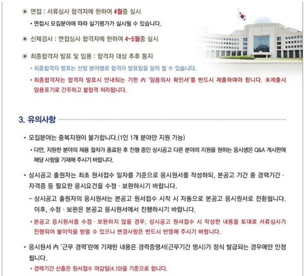 ■ 신체검사 : 면접심사 합격자에 한하여 4~5월중 실시