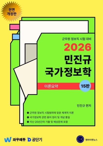 2026 민진규 국가정보학 15판 이론요약은 PART 01 정보와 국가정보학, PART 02 국가 정보기관의 비밀활동과 역할, PART 03 국가정보 기관의 이해와 발전방향 등으로 구성됐다.