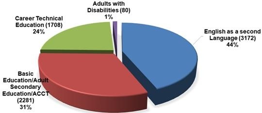 ○ 이 직업학교에 등록된 프로그램의 비율은 영어교육인 ESL이 44.0%로 가장 많고 성인중등교육(ACCT) 31.0%, 직업기술교육 24% 순으로 나타났다. 특히, 장애를 가진 성인에 대한 교육도 1.0%였다.