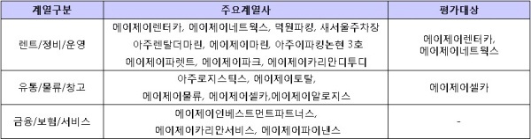 ▲ [표1. 아주LNF의 주요 계열사와 평가대상]