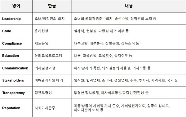 ▲윤리경영을 측정하는 8-Flag Model(출처 : iNIS)