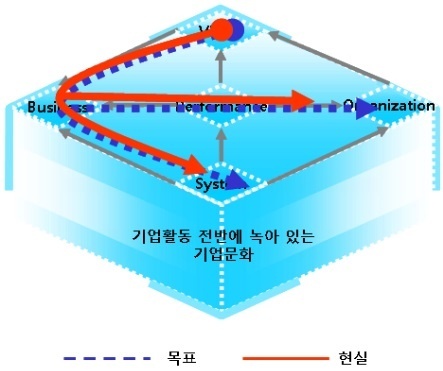 ▲ [그림 14-3. SWEAT Model로 분석한 현대중공업 기업문화]