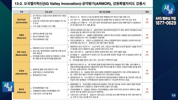 평가를 위한 방송에는 푸른나무, 이상구 원장, 민진규 소장(국가정보전략연구소) 등이 출연했다. 평가 방법은 국가정보전략연구소(국정연, iNIS)가 개발한 ‘오곡(五穀)밸리혁신(5G Valley Innovation)-선거공약’ 평가 모델을 적용했다.