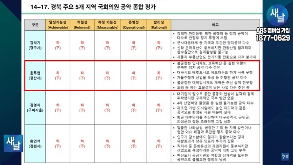 [국회의원 공약 평가] ⑮새날 방송, 경상북도 경산시 윤두현 의원···달성가능성 등 5개 부문 모두 하(下)