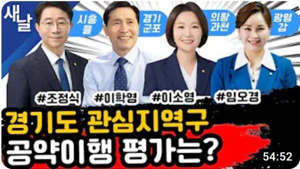 ▲ 경기도 시흥시을, 군포시, 의왕시·과천시, 광명시갑(조정식, 이학영, 이소영, 임오경 의원) 공약 평가 방송 [출처 = 새날 유튜브]
