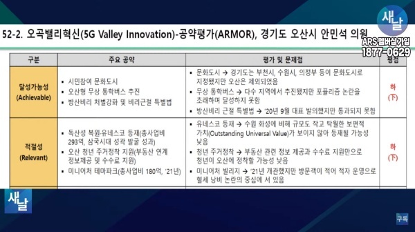 [국회의원 공약 평가] 52. 새날 방송, 경기도 오산시 안민석 의원···달성가능성 등 5개 부문 모두 하(下)